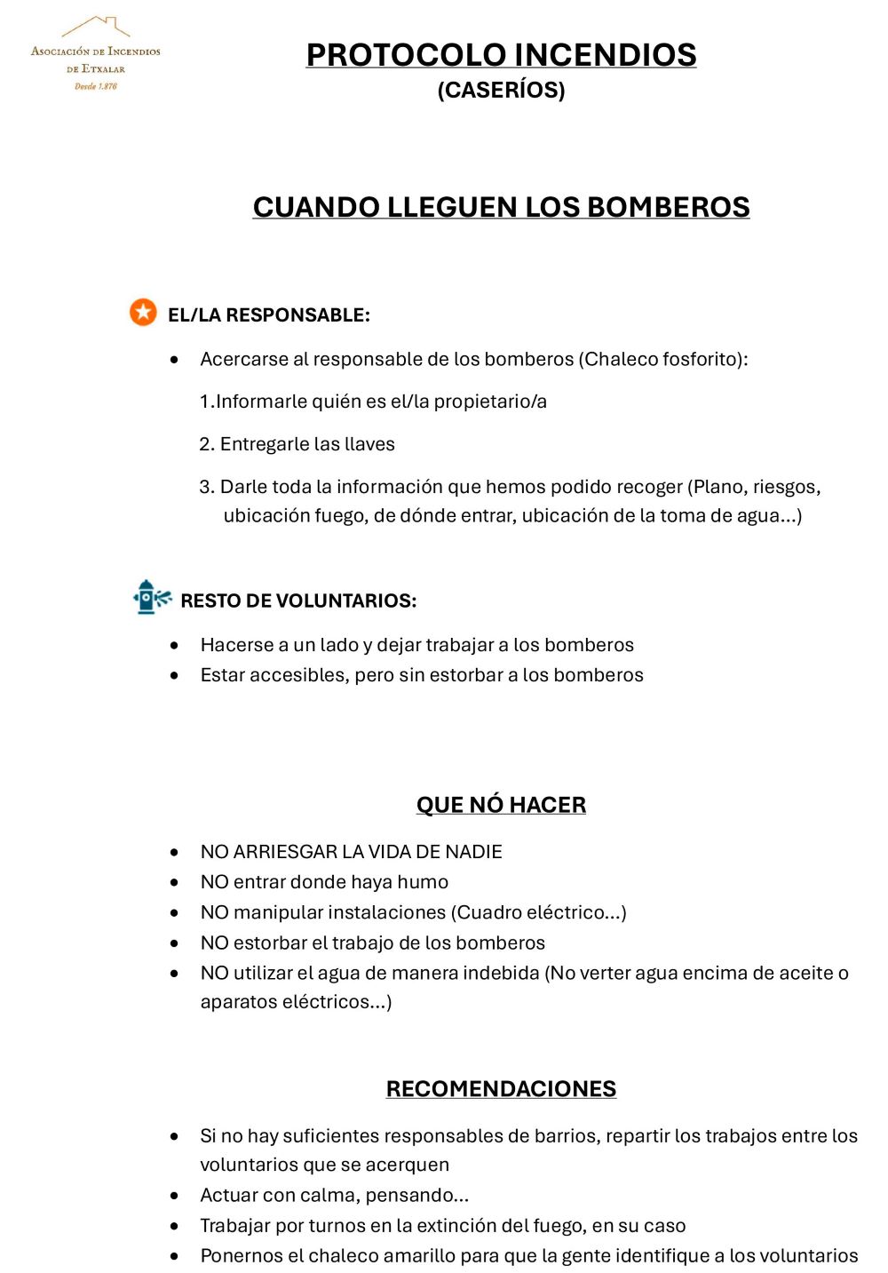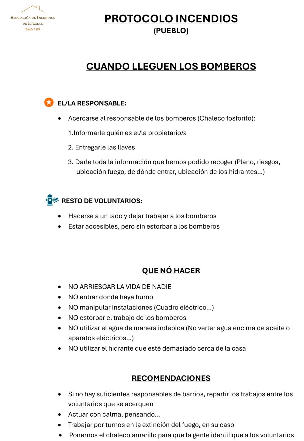 Este es un protocolo creado por la Asociación de Incendios de Etxalar para poder ayudar de forma coordinada en los incendios: